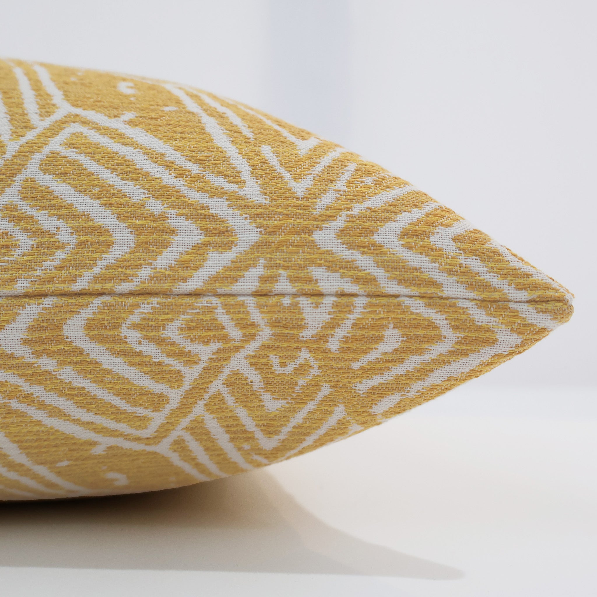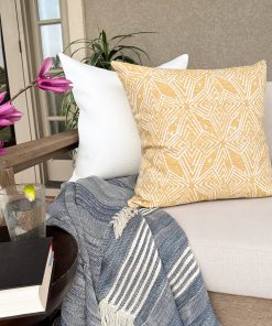 Introducing Twila outdoor pillow cover. Twila is a beautiful white and yellow pillow cover in a durable outdoor fabric that will brighten your outdoor living space. Pair with our other outdoor pillow covers for a beautiful and comfortable outdoor look.