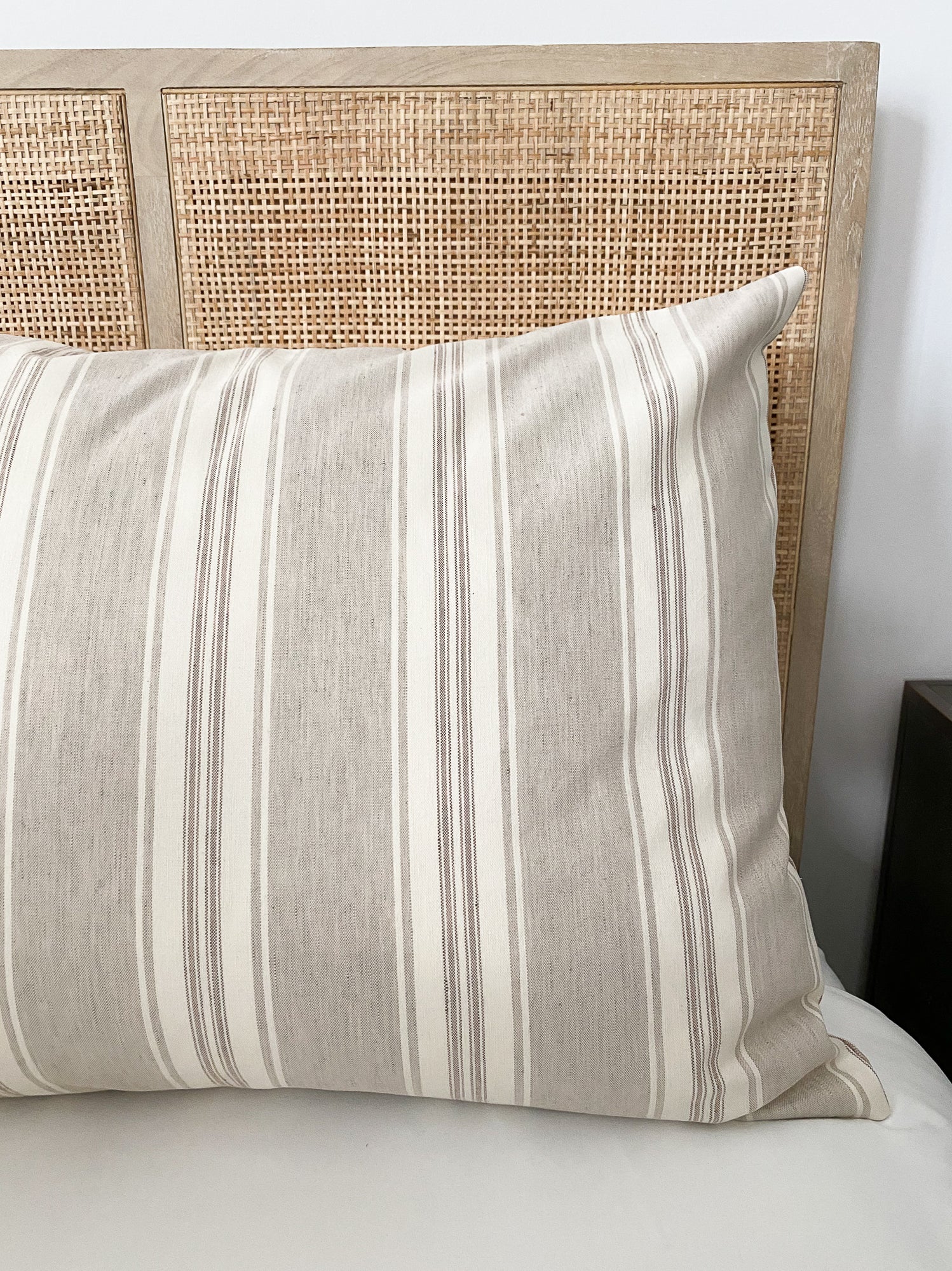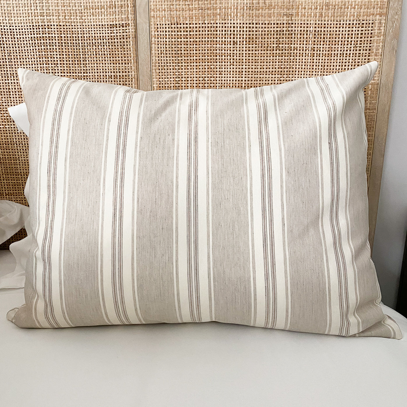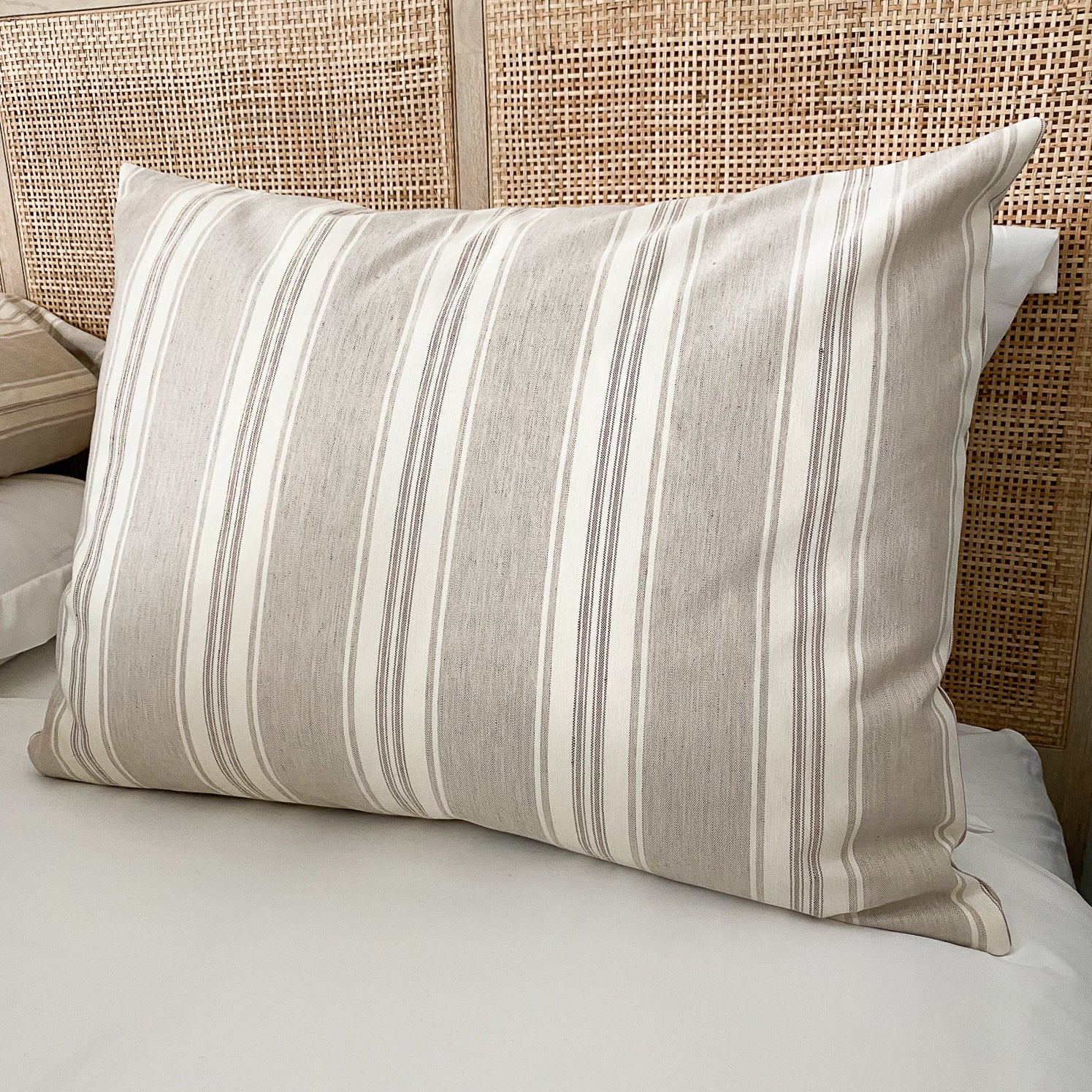 Vanilla Latte Stripes Pillow Sham is a part of our new product line of decorative pillow shams for the bed. It is also seen in our Warm Comfort bed set. This pillow cover is easy to pair with many of our decorative pillow covers.