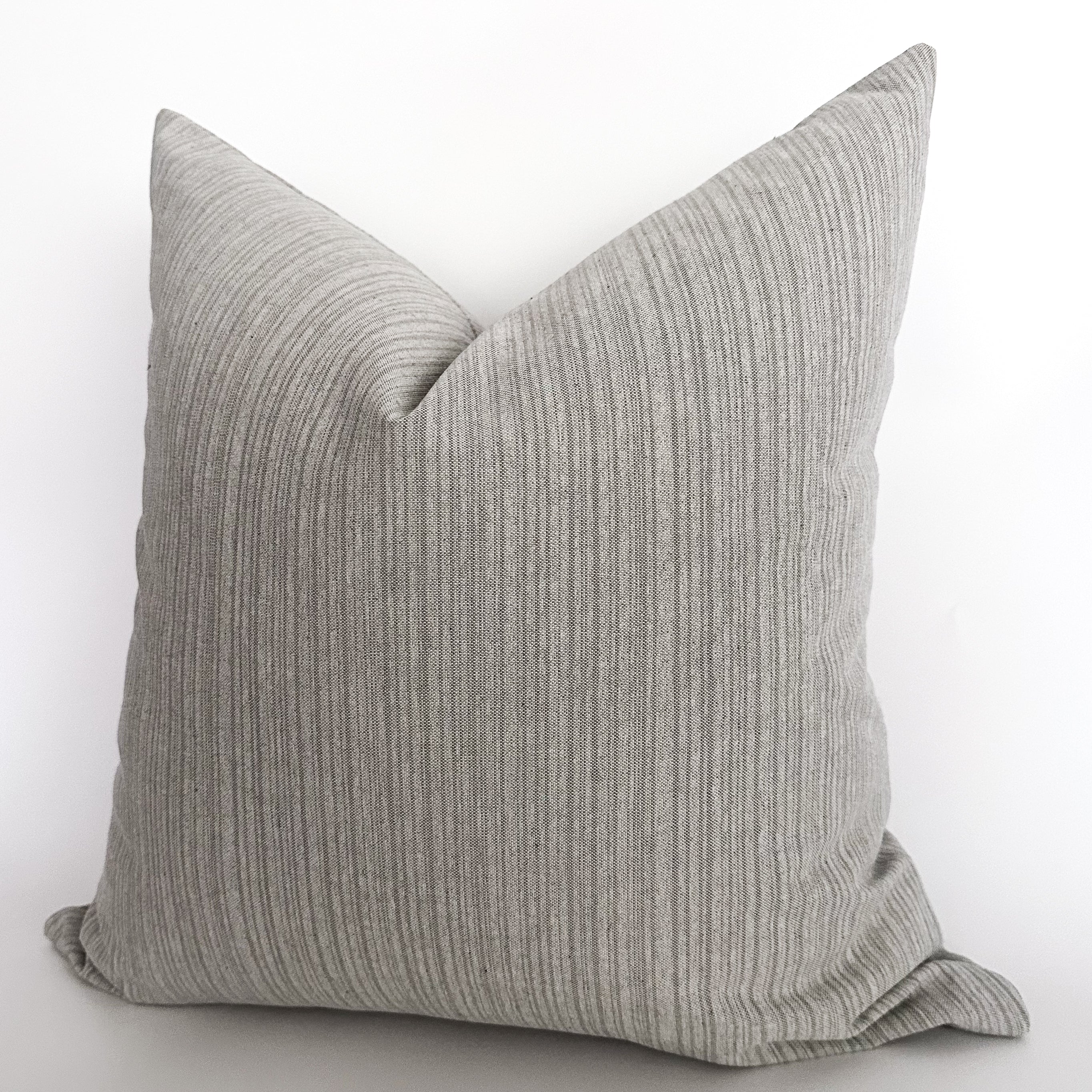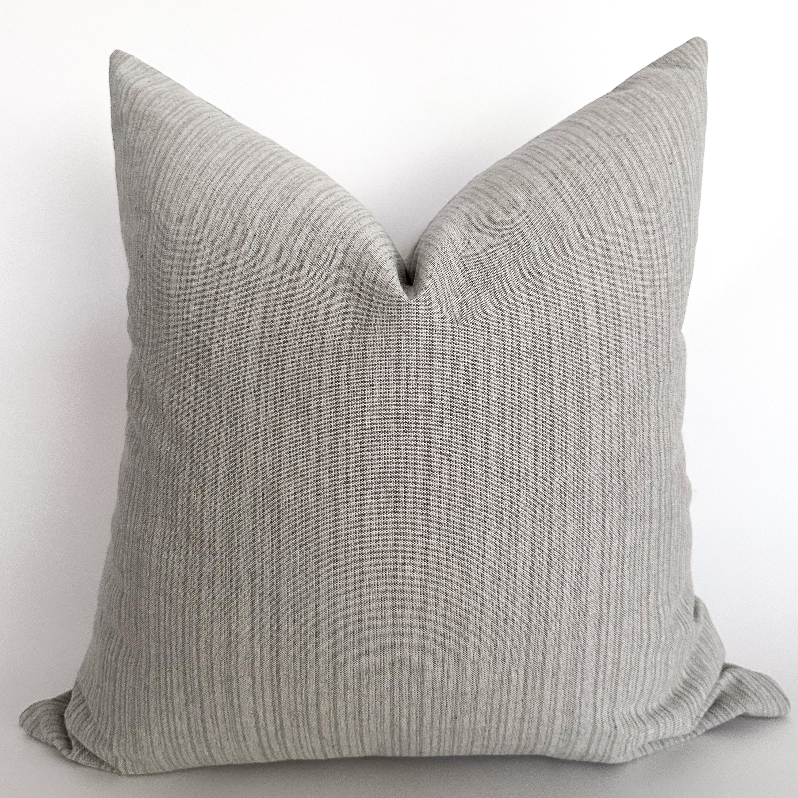 Our Watermark Gray Pillow Cover features a smooth woven fabric with stripe design. Its neutral color gives an elegant feel to any space. Mix and match with other pillows of your choosing.
