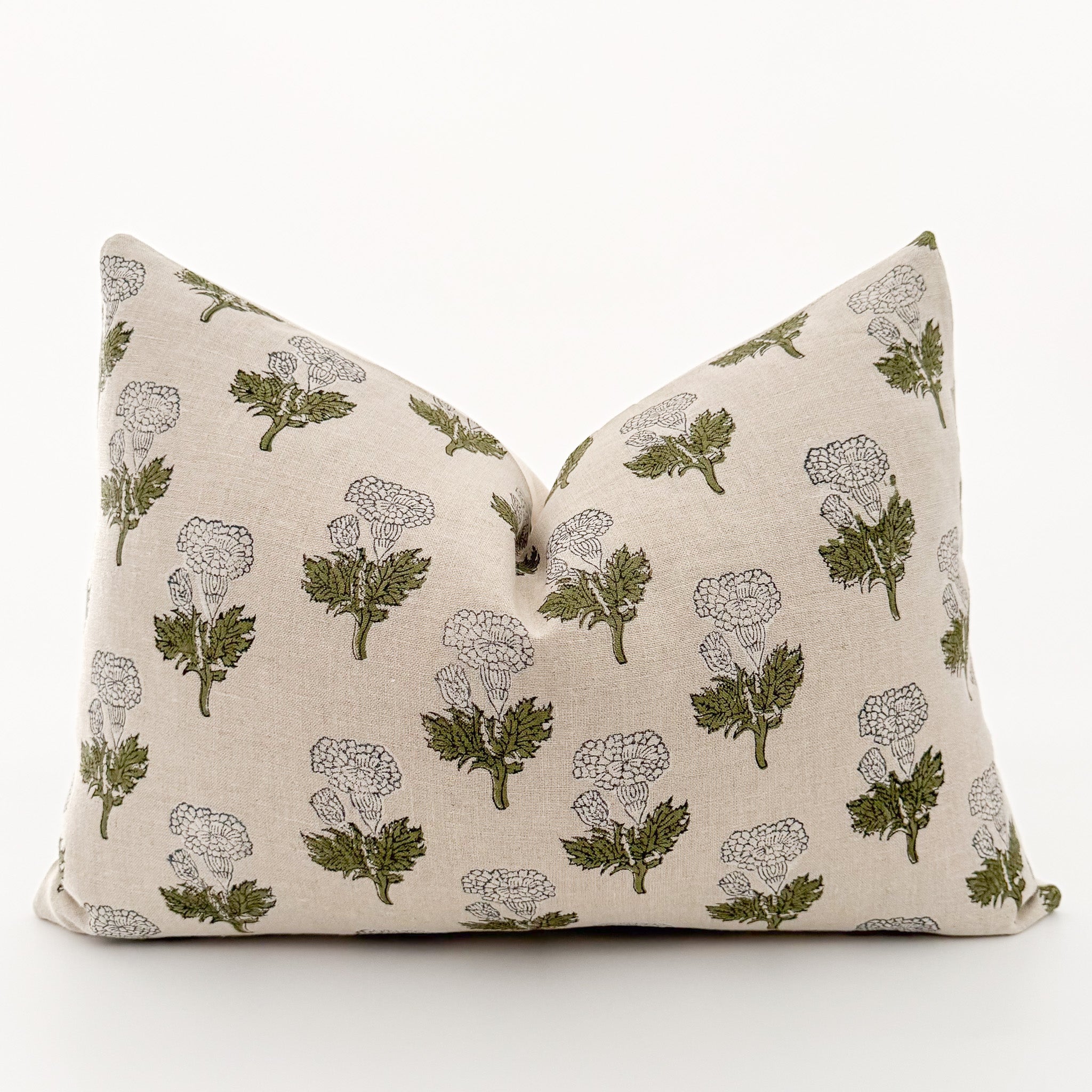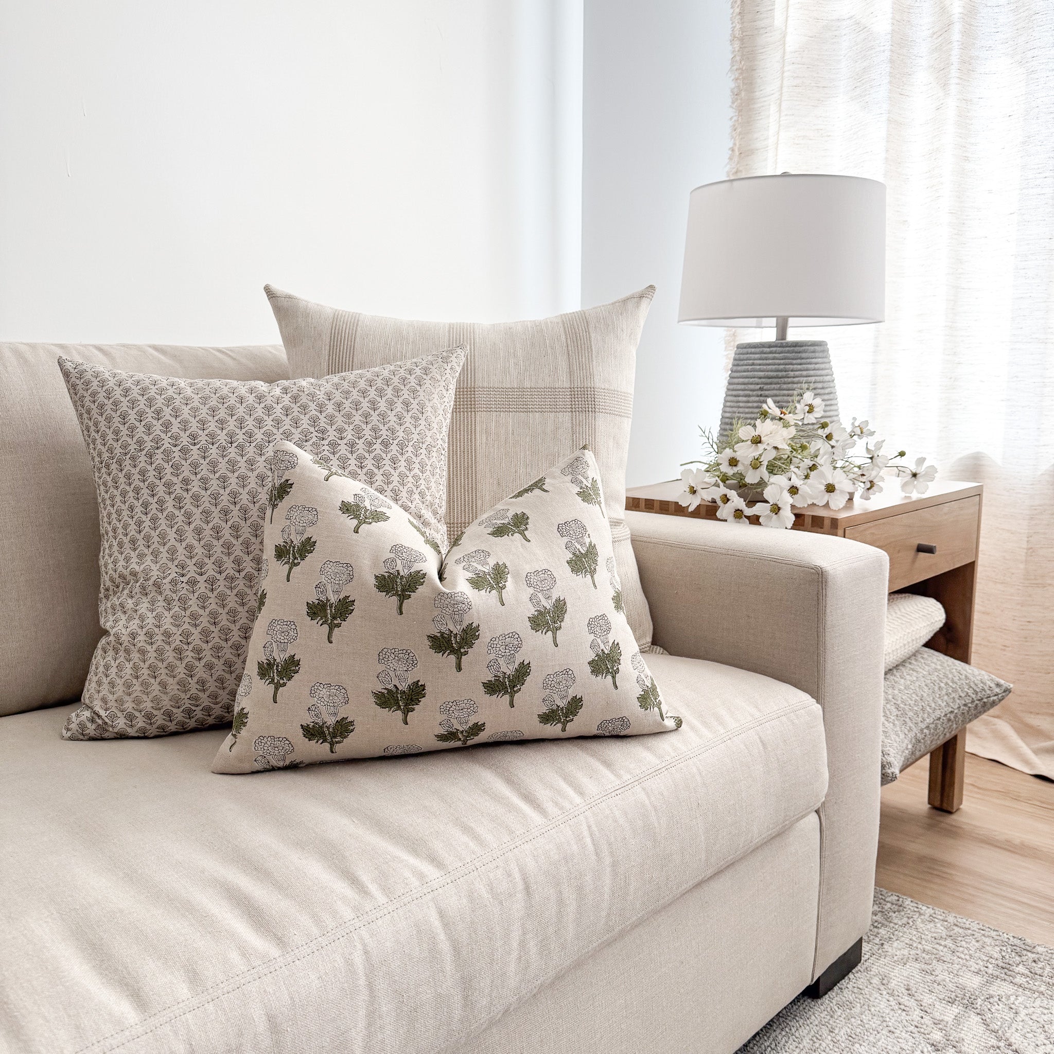 Our Wild Flower Pillow Cover offers neutral woven 100% linen fibers and smooth touch. Wabi is the beauty found in perfectly raw state things. It is valued by offering character traits only handmade or well over time love items can offer. This the fabric design was hand crafted with a wooden carved stamp and hand painted with colors made form plants. Sold exclusively at Hackner Home. Mix and match with other pillow covers from the shop.